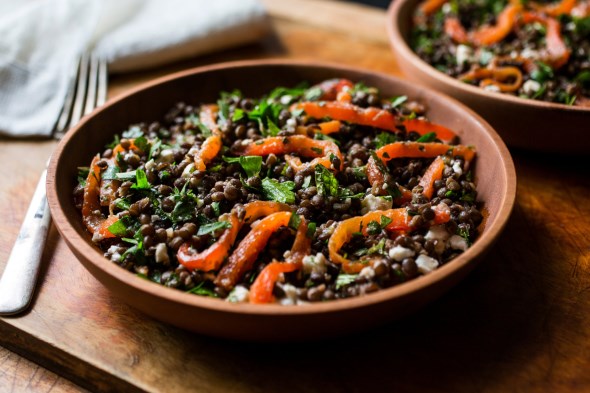 Σαλάτα με φακές και χρωματιστές πιπεριές