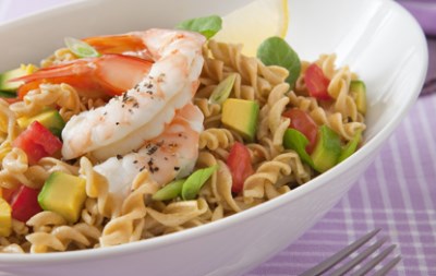Μακαρονοσαλάτα με γαρίδες και αβοκάντο