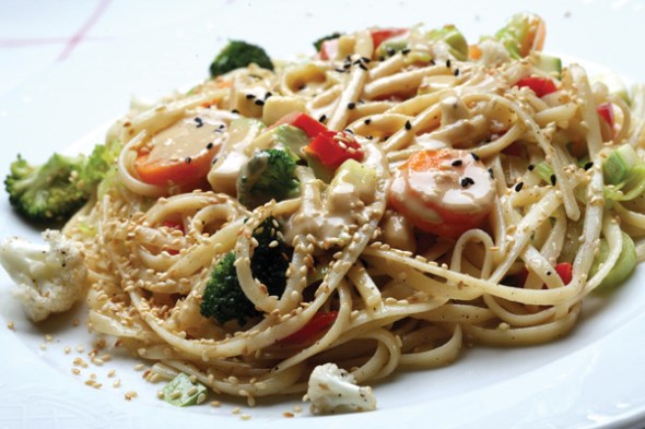 Σπαγγέτι με λαχανικά σουσάμι και ταχίνι