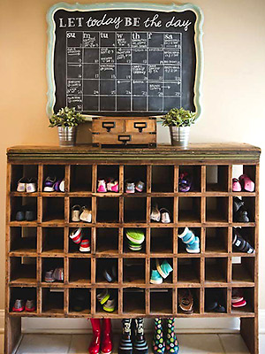 Δείτε πόσο ωραία έχει οργανώσει την οικογένεια αυτή η μαμά, φτιάχνοντας έναν πίνακα με τις υποχρεώσεις κάθε μέλους για κάθε εβδομάδα, και τον έχει τοποθετήσει πάνω από μία ωραιότατη παλιά παπουτσοθήκη!