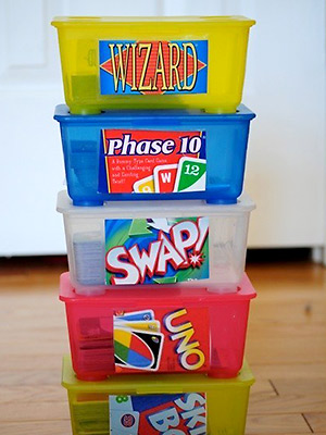 Καθώς οι χάρτινες συσκευασίες των παιχνιδιών πολύ εύκολα καταστρέφονται, φτιάξτε ένα νέο σπίτι για κάθε παιχνίδι μέσα σε μικρά πλαστικά κουτιά, έξω από καθένα εκ των οποίων μπορείτε να κολλήσετε το εξώφυλλο του κάθε παιχνιδιού.