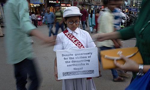 Νεαρή μαθήτρια στην Ινδία συγκεντρώνει χρήματα, για να τα προσφέρει στα θύματα του καταστροφικού σεισμού στο Νεπαλ.