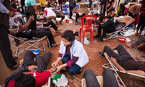 Αμέτρητοι είναι οι Νεπαλέζοι που επιβίωσαν από τον σεισμό και λίγες μέρες μετά προθυμοποιήθηκαν εθελοντικά να δώσουν αίμα για τους δεκάδες χιλιάδες τραυματίες.