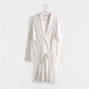 Πλεκτή ρόμπα από βαμβάκι με κεντημένη κορδέλα στο πέτο, για να νιώθει σαν βασίλισσα όταν είναι στο σπίτι.