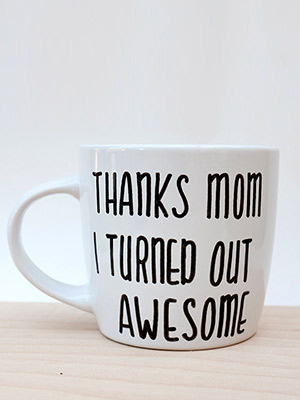 Χαρίστε στη μαμά σας μία κούπα πάνω στην οποία θα ζητήσετε να σας γράψουν ένα γλυκό ή αστείο μήνυμα, όπως «Ευχαριστώ μαμά που με έκανες τόσο φοβερή!».