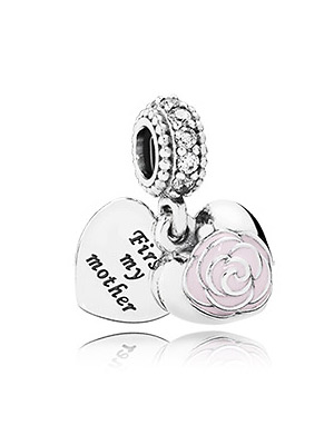 Υπέροχο μενταγιόν από ασήμι και ζιρκόν, με ροζ τριανταφυλλάκι και το πιο γλυκό μήνυμα: Πρώτα η μητέρα μου.