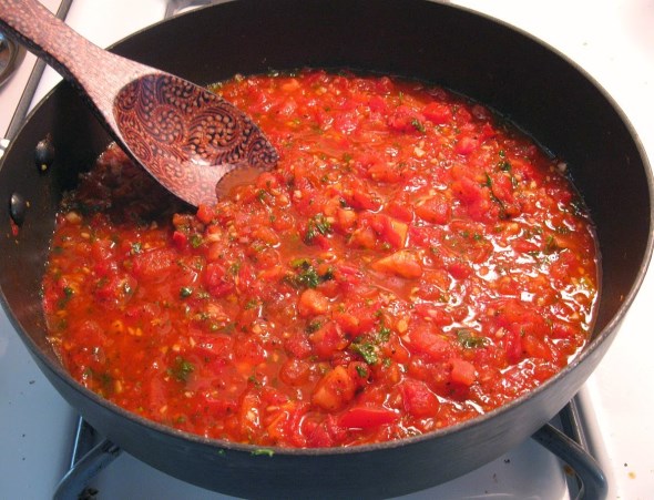 Στη συνέχεια ρίξτε στην κατσαρόλα τα υλικά της σάλτσας και αφήστε την να βράσει μέχρι να «δέσει» σε ένα συμπαγές μίγμα.