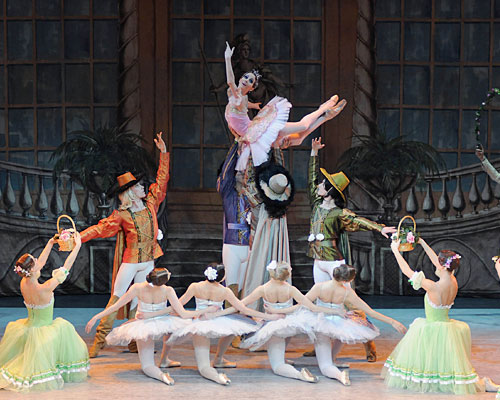 Η πρεμιέρα του μπαλέτου έγινε στο θέατρο Μαριίνσκι της Αγίας Πετρούπολης στις 15 Ιανουαρίου του 1890. Την ημέρα εκείνη, ο τσάρος Αλέξανδρος ΙΙΙ, κάλεσε τον συνθέτη στο αυτοκρατορικό θεωρείο, κάνοντας το σχόλιο «Πολύ καλά», γεγονός που μάλλον ενόχλησε τον Τσαϊκόφσκι ο οποίος περίμενε μία πιο ενθουσιώδη αντίδραση στο έργο του. Μερικά χρόνια αργότερα, το 1899, ακολούθησε η πρεμιέρα του μπαλέτου στα Μπολσόι της Μόσχας.