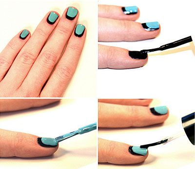 Μια ακόμη δημοφιλής τεχνική είναι η παρακάτω. Πρώτα βάψτε τα νύχια σας μαύρα, και, όταν στεγνώσουν, προσθέστε μια πινελιά γαλάζιου ή τιρκουάζ.