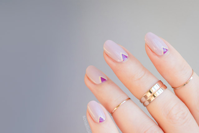 Η τελευταία λέξη της μόδας στο καλοκαιρινό μανικιούρ είναι τα γεωμετρικά, τριγωνικά σχήματα. Για να πετύχετε το παρακάτω αποτέλεσμα θα χρειαστείτε τρία μανό και τρία πολύ λεπτά πινελάκια μανικιούρ για να τραβήξετε ίσιες γραμμές (εναλλακτικά, δείξτε το στη μανικιουρίστ σας!).
