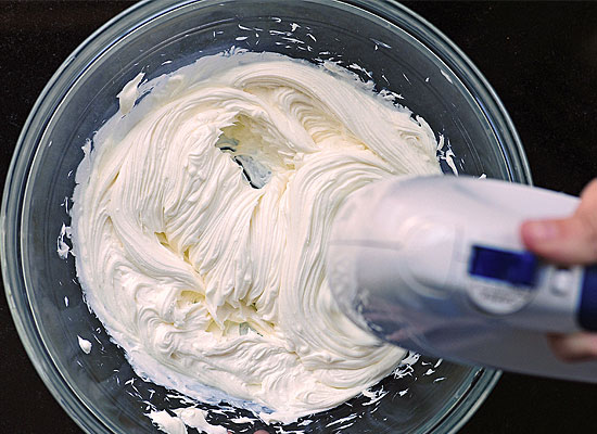Σε ένα άλλο μπολ «χτυπήστε» καλά την κρέμα γάλακτος, μέχρι να πάρει όγκο.