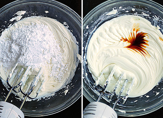 Συνεχίστε προσθέτοντας την ζάχαρη και τη βανίλια. Αναμείξτε τα πολύ καλά.