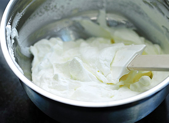Μην αναμείξετε το μείγμα με δύναμη για να μην «ξεφουσκώσει», αλλά απαλά, μέχρι να πάρει ομοιόμορφο χρώμα.