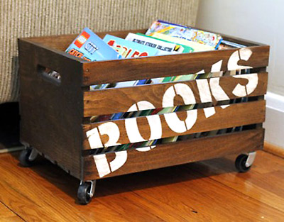 Χρειάζεται μόνο ένα καφάσι, το οποίο μπορείτε να βάψετε, και τέσσερα ροδάκια, για να φτιάξετε μία πρωτότυπη κινούμενη θήκη για βιβλία και περιοδικά, την οποία μπορείτε να τοποθετήσετε στο σαλόνι, δίπλα στον καναπέ, ή και στο δωμάτιο του παιδιού. Προαιρετικά, μπορείτε να βάψετε ή να λουστράρετε το καφάσι.