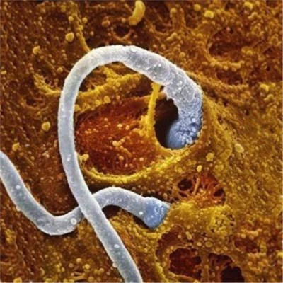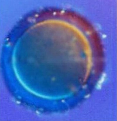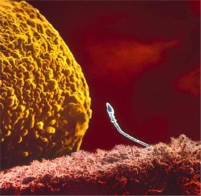 Το σπερματοζωάριο εισέρχεται στο ωάριο (στο κάτω μέρος της εικόνας)