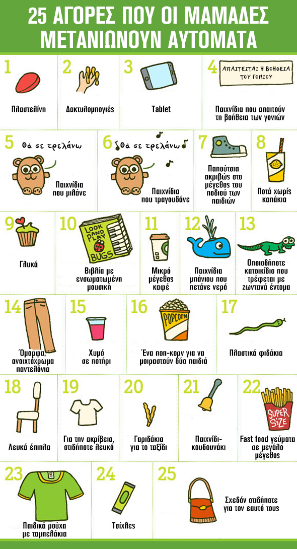 Το παρακάτω σκίτσο περιγράφει με χιούμορ τις 25 χαρακτηριστικότερες αγορές που κάνουν οι μαμάδες, για τις οποίες μετανιώνουν αμέσως μετά: