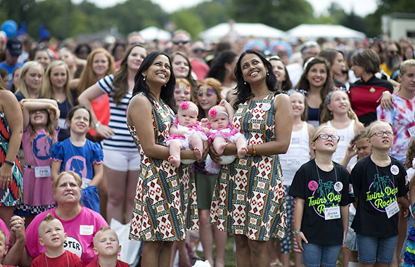 Στο Φεστιβάλ «Ημέρες Διδύμων» τα βλέπουμε όλα διπλά. Ή τριπλά. Ή τετραπλά. Δύο περίπου χιλιάδες δίδυμα, τρίδυμα και τετράδυμα αδέρφια συγκεντρώνονται στο Οχάιο τα τελευταία 40 χρόνια για να διασκεδάσουν, να παρελάσουν και να διαγωνιστούν για το ποιοι είναι οι «πιο πανομοιότυποι». Δείτε στις φωτογραφίες που ακολουθούν τα χαρούμενα, πανομοιότυπα αδερφάκια κάθε ηλικίας ντυμένα με απίθανες στολές.