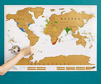 Κρεμάστε αυτόν τον χάρτη στο δωμάτιο του παιδιού και ξεκινήστε να «ξύνετε» μαζί τους τις χώρες που ενδεχομένως έχετε επισκεφτεί μαζί μέχρι σήμερα, θέτοντάς του έτσι τον στόχο να επισκέπτεται όλο και περισσότερες όσο θα μεγαλώνει.