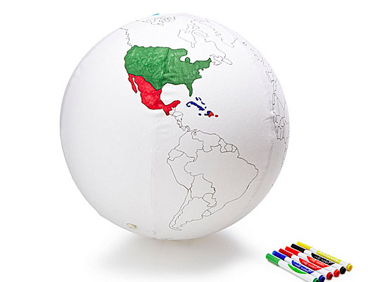 Μια υδρόγειος που φουσκώνει και είναι φτιαγμένη από τέτοιο υλικό ώστε τα παιδιά να μπορούν να χρωματίσουν τις χώρες με τους ειδικούς μαρκαδόρους. Μάθημα γεωγραφίας και διασκέδαση, μαζί!