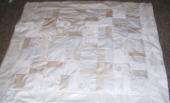 Ξανά με τη βοήθεια κάποιας καλής μοδίστρας και εφόσον το ύφασμα του νυφικού σας το επιτρέπει, μπορείτε να το κόψετε και να το μετατρέψετε σε κάτι νέο, π.χ. να κρατήσετε τη δαντέλα για κουνουπιέρα της κούνιας του μωρού σας ή να φτιάξετε με το μετάξι μία παπλωματοθήκη... πολυτελείας ή ακόμα και θήκες για διακοσμητικά μαξιλάρια!