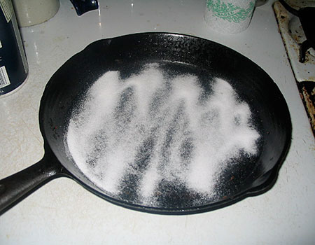 Τα σκεύη από μαντέμι, ακόμα, ενώ μας βοηθούν να φτιάξουμε πολύ νόστιμα φαγητά, θέλουν ιδιαίτερη φροντίδα. Το πλυντήριο πιάτων μπορεί να τα αποχρωματίσει και να τα αχρηστεύσει. Καλό θα είναι, λοιπόν, να τα πλένετε προσεκτικά στο χέρι, μουλιάζοντάς τα σε ζεστό νερό, χωρίς σαπούνι, ή τρίβοντάς τα απαλά με αλάτι (φωτογραφία).