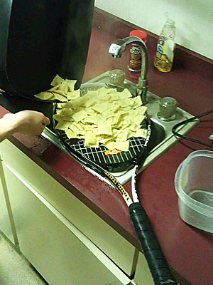 Ζεστό νερό και μία ρακέτα για σούρωμα και... έτοιμα τα ραβιόλια!