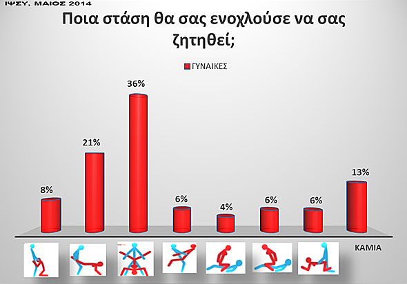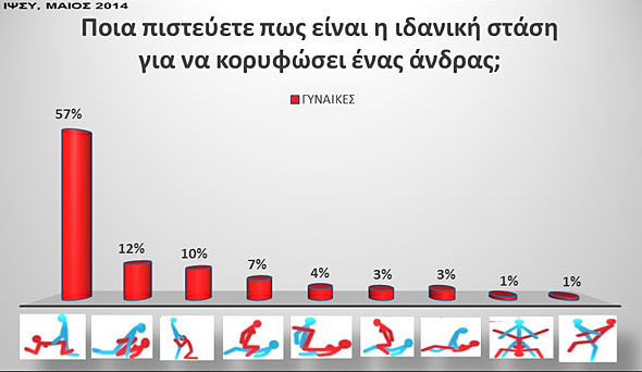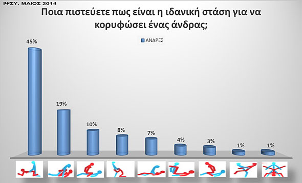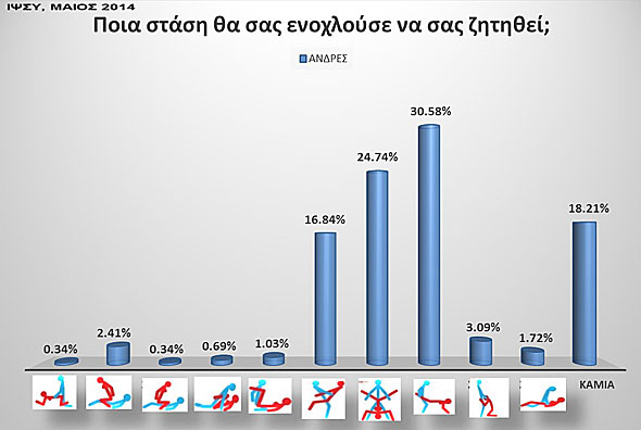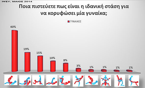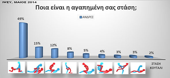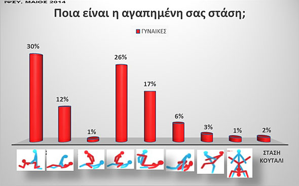 Στην έρευνα συμμετείχαν συνολικά 1036 άτομα και τα νέα που προκύπτουν από τα αποτελέσματα είναι πολύ ευχάριστα: σύμπνοια και κατανόηση χαρακτηρίζει τα δύο φύλα! Άντρες και γυναίκες έχουν την ίδια αγαπημένη στάση (μαντεύετε ποια είναι;) και –ακόμη πιο σημαντικό- και τα δύο φύλα φαίνεται να ξέρουν τις εκατέρωθεν προτιμήσεις.