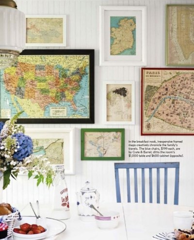 Τα πολλά, μικρά καδράκια στους τοίχους αποτελούν εγγύηση «ζεστής» και φιλόξενης ατμόσφαιρας. Μπορείτε να καδράρετε παλιούς χάρτες -αν είστε λάτρεις του vintage.