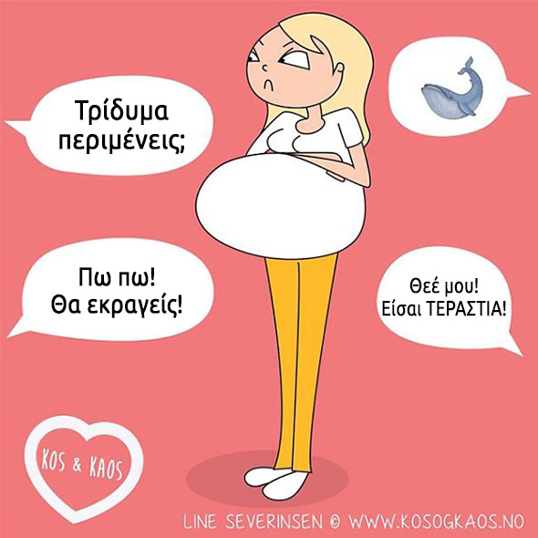Η Line Severinsen, σκιτσοφράφος, animator και μητέρα δύο παιδιών δημιούργησε μια σειρά σκίτσων που περιγράφουν τα καθημερινά προβλήματα μιας γυναίκας σε προχωρημένη εγκυμοσύνη. Δείτε τις μικρές καθημερινές μάχες των εγκύων και… μαμάδες όλου του κόσμου ενωθείτε!
