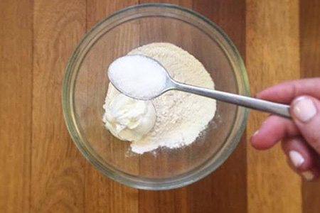 Σε ενα μπόλ βάλτε το αλεύρι με το γιαούρτι και το αλάτι. Ανακατέψτε καλά και στην συνέχεια σχηματίστε μια μπάλα.