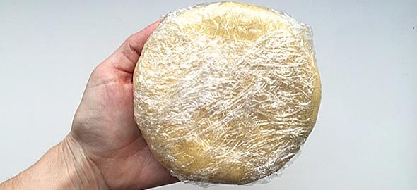 'Οταν είστε έτοιμοι να χρησιμοποιήσετε την ζύμη, βγάλτε την από το ψυγείο και ανοίξτε την πάνω σε μια ελαφρώς αλευρωμένη επιφάνεια, σε πάχος ενός εκατοστού περίπου.
