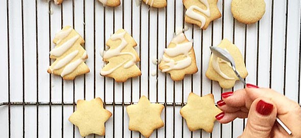 Προθερμάνετε τον φούρνο στους 200 βαθμούς κελσίου, κόψτε με κουπ πατ τα σχήματα που θέλετε και ψήστε τα μπισκότα σας πάνω σε ενα φύλλο λαδόκολλας για 5 με 6 λεπτά ή μέχρι να «χρυσίσουν» ελαφρά οι άκρες.