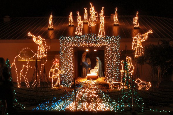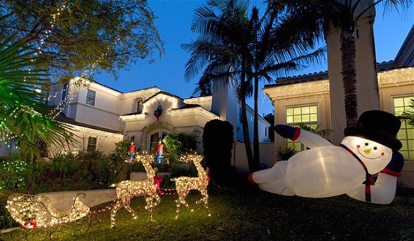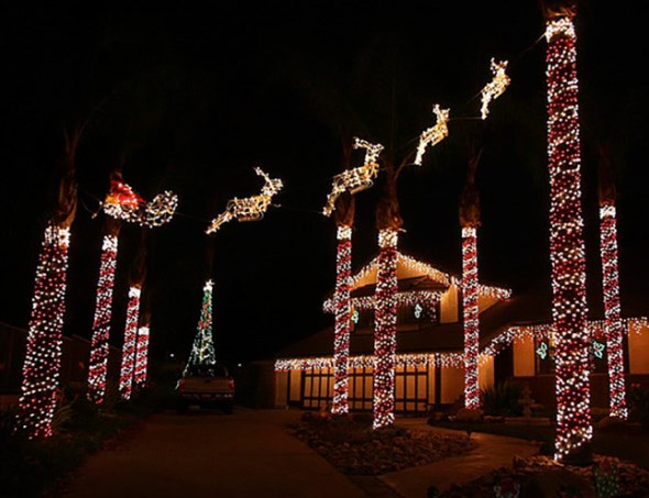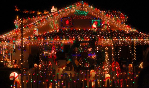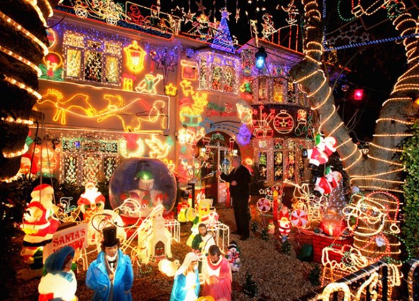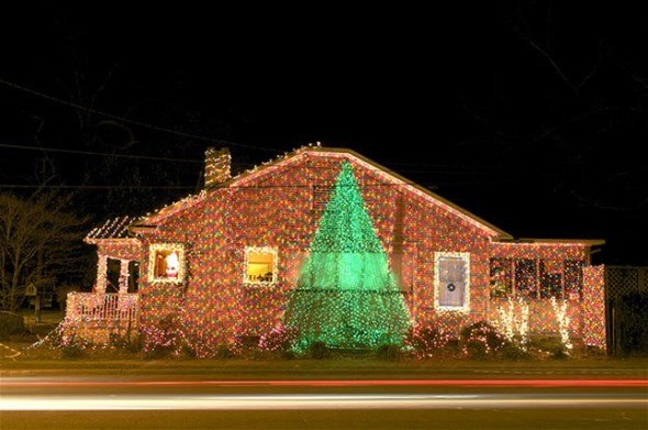 Μια-δύο σειρές από φωτεινά λαμπάκια στα κάγκελα του κήπου ή του μπαλκονιού είναι μια γλυκιά, χριστουγεννιάτικη πινελιά που ομορφαίνει το σπίτι και τη γειτονιά. Δεν θα μπορούσαμε να πούμε το ίδιο για μία-δύο χιλιάδες σειρές φωτεινά λαμπάκια. Στις φωτογραφίες που ακολουθούν, κάποιες οικογένειες, πήραν το ζήτημα "Χριστουγεννιάτικος στολισμός σπιτιού" ιδιαιτέρως ζεστά και έκαναν το σπίτι τους Λας Βέγκας. Η γοητεία της απλότητας, η κομψότητα της διακριτικότητας είναι ακριβώς το αντίθετο αυτού που θα δείτε. Απολαύστε τα σπίτια-υπερπαραγωγές: