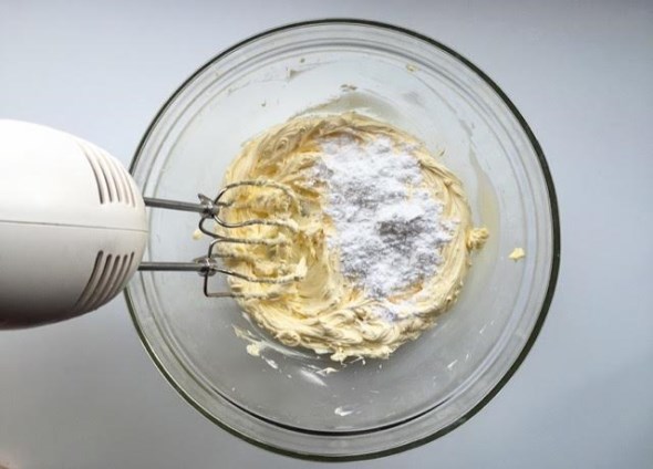 Χτυπήστε στο μίξερ το βούτυρο με την ζάχαρη μέχρι να γίνει πολύ αφράτο.