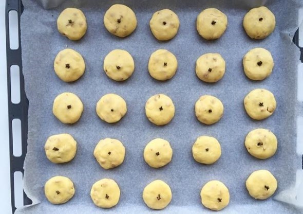 Πλάστε τους κουραμπιέδες στο σχήμα που θέλετε και καρφώστε σε κάθε έναν από ένα γαρύφαλλο.