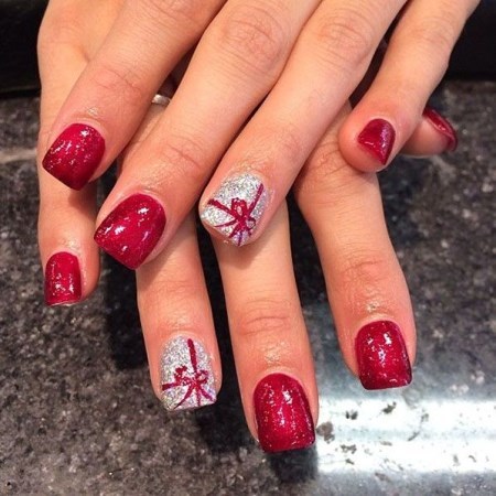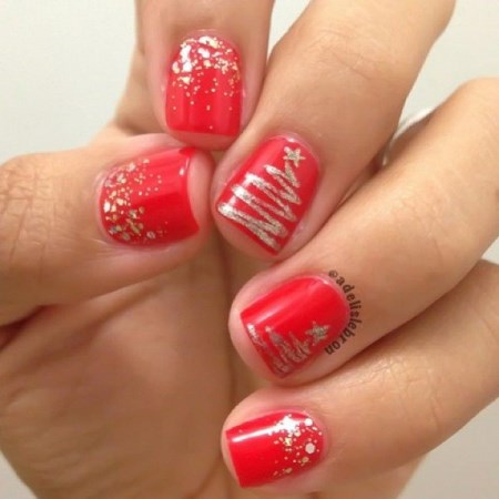 11. Χρυσαφί γραμμικό σχέδιο σε κόκκινα νύχια