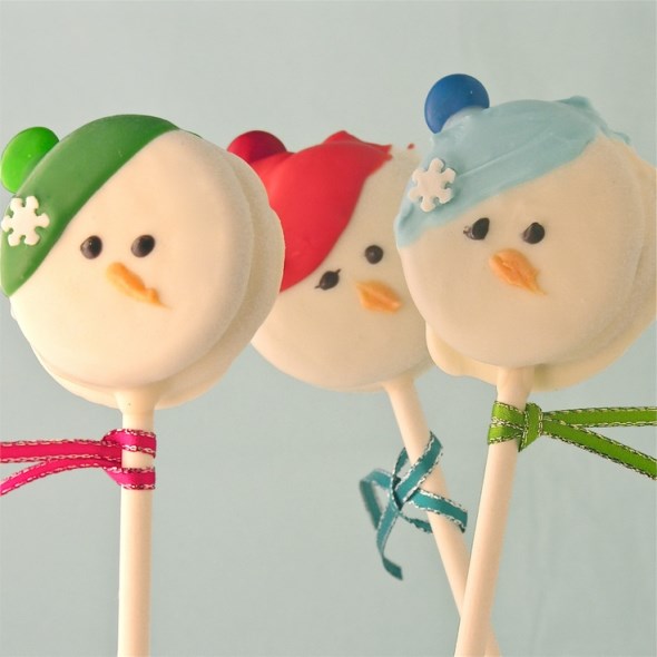 2. Αν το μεράκι σας περισσεύει, μπορείτε να βουτήξετε με προσοχή τα χιονανθρωπάκια σε χρωματιστό γλάσο για να φτιάξετε σκουφάκια.