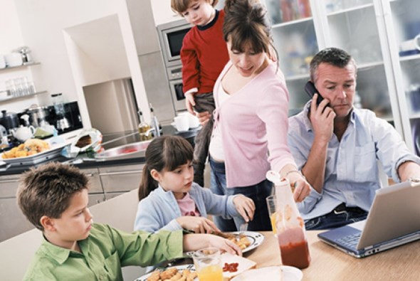 ... μήπως σηκωθεί ο άντρας μου και αρχίζει να ετοιμάζει εκείνος τα παιδιά για το σχολείο; Μπα, ας σηκωθώ εγώ να γλυτώσω κι απ' το ροχαλητό του! Έτσι κι αλλιώς, θα κάνω πιο γρήγορα και, εξάλλου, μέχρι να τελειώσει, θα με τρελάνει στις ερωτήσεις.