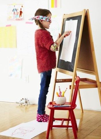 Μια διασκεδαστική παραλλαγή των γνωστών και μη εξαιρετέων «σκιτσογραφειών» είναι αυτή που το παιδί προσπαθεί να ζωγραφίσει τη λέξη που του έχει βάλει η αντίπαλη ομάδα (ώστε να την καταλάβει η δική του) με τα μάτια κλειστά!
