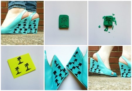 Με την ίδια ακριβώς τεχνική, μπορείτε να φτιάξετε ένα λιλιπούτειο φοίνικα χρησιμοποιώντας μια φαρδιά, πράσινη γόμα (η... χειροτέχνις της φωτογραφίας έχει χρησιμοποιήσει την αυτοσχέδια σφραγίδα για να διακοσμήσει τις πλατφόρμες της -εσείς μπορείτε απλώς να την χρησιμοποιήσετε για τις χειροτεχνίες των παιδιών).