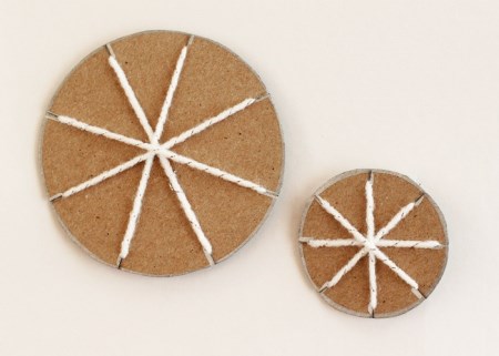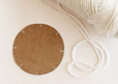 2. Περάστε τον σπάγγο από τις εγκοπές και δέστε τις άκρες του στην άλλη πλευρά του φέλλινου δίσκου.
