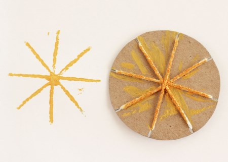 Ενώστε επτά μολύβια με ένα λαστιχάκι ή μια κορδέλα, βουτήξτε σε μελάνι ή νερομπογιές και φτιάξτε με το παιδί τα πιο ωραία λουλούδια, τσαμπιά από χρωματιστά σταφύλια και ό,τι άλλο μπορείτε να σκεφτείτε (εσείς ή το δημιουργικό πιτσιρίκι σας).