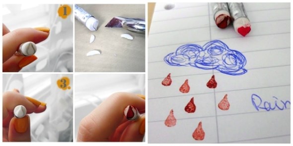 Κατά τον ίδιο τρόπο, μπορείτε να φτιάξετε μια σφραγίδα-σταγόνα για... τις βροχερές σας ζωγραφιές.