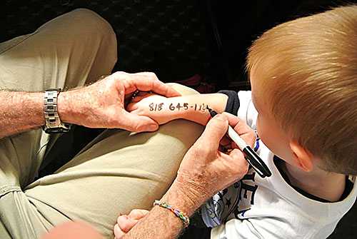 Ακόμα και αν ξέρει απ' έξω το τηλέφωνό σας, μην παραλείψετε να το γράψετε σ' ένα χαρτί και να το βάλετε στην τσέπη του. Αν φοβάστε ότι υπάρχει περίπτωση να το χάσει, προτιμήστε να το γράψετε ακόμα και στο μπράτσο του μ' ένα μαρκαδόρο ή σε μια αυτοκόλλητη ετικέτα που θα κολλήσετε στο εσωτερικό της μπλούζας του.