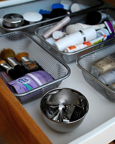 Χρησιμοποιήστε κάθε είδους καλάθια για ν' αποθηκεύσετε τα καλλυντικά ή τα καθαριστικά σας.