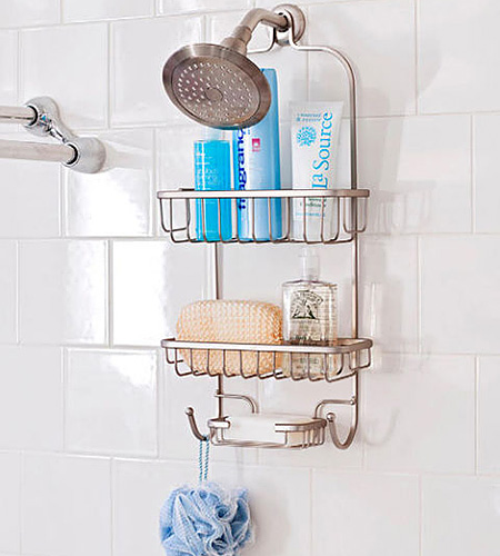 Ή εξοικονομήστε χώρο κρεμώντας μια μεταλλική κρεμάστρα στο «τηλέφωνο» του ντους που θα έχει συγκεντρωμένα τα σαμπουάν και τ' αφρόλουτρα.