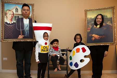 Όλη η οικογένεια παρατεταγμένη στη σειρά με διαφορετικό, χρωματιστό σύνολο ο καθένας. Μια από τις πιο πρωτότυπες αλλά και πιο εύκολες ιδέες, που μπορείτε άνετα να εφαρμόσετε.