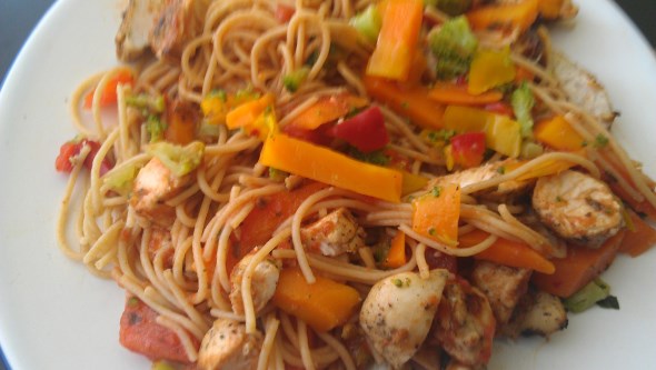 Μακαρονάδα λαχανικών με κοτόπουλο