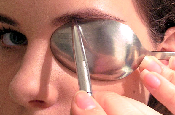 Αν δυσκολεύεστε να βάλετε σωστά το μολύβι ή να δώσετε το σωστό σχήμα στα φρύδια σας, βάλτε ένα κουτάλι και «πατήστε» πάνω σ' αυτό.