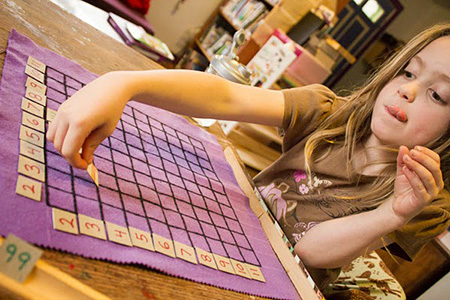 Κόψτε ένα μεγάλο, τετράγωνο κομμάτι από τσόχα και ζωγραφίστε δέκα οριζόντιες και κάθετες σειρές. Σε τετράγωνα κομμάτια από χαρτόνι γράψτε τον κάθε αριθμό και τα πολλαπλάσιά του (με διαφορετικό χρώμα). Στη συνέχεια, ζητήστε απ' το παιδί να βάλει το κάθε τετραγωνάκι στη σωστή θέση. Στο τέλος θα σχηματίσει τον δικό του πίνακα!